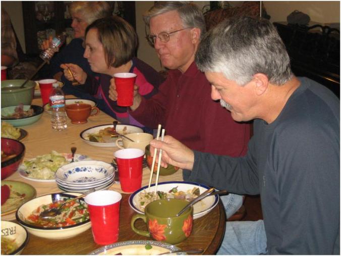 Robert and Karen came, and shortly after their arrival Lily conducted a school on using chopsticks.