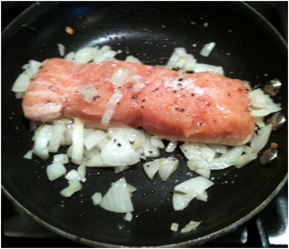 Season a small salmon fillet (I used kosher salt and freshly ground pepper) and cook in a skillet
