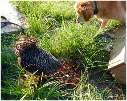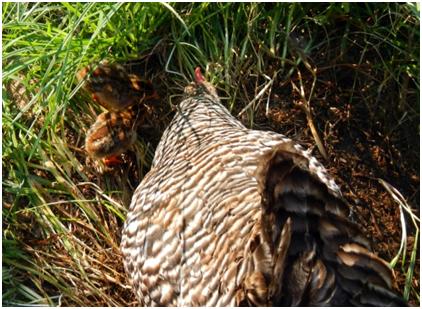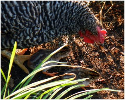 Yesterday while I was feeding the animals and hanging out with Willow and Rose, I heard this peeping sound. I looked to my left to find a hen and two chicks.