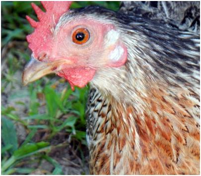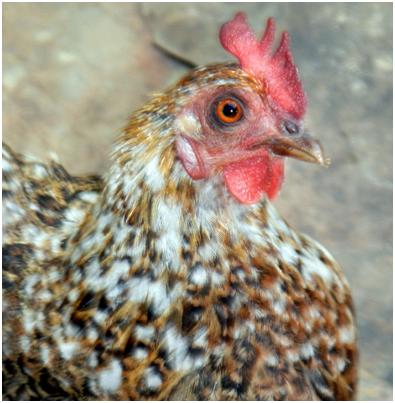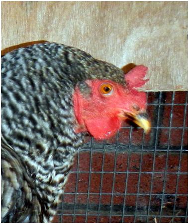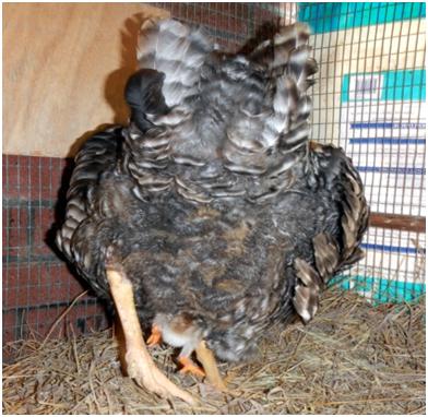 toward the back of the hen.
