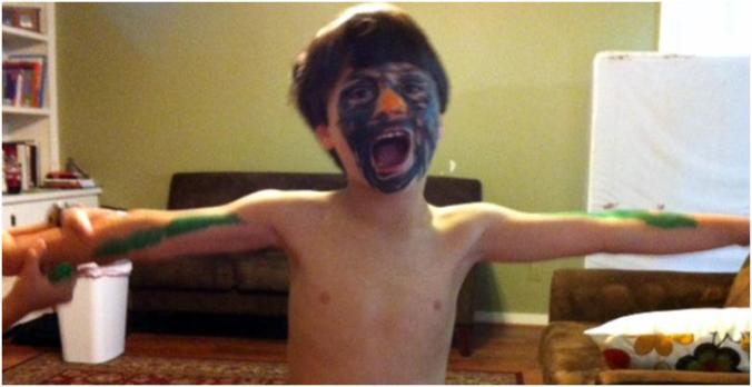 Hudson was being transformed into a crow! Denton said, “All done Hudson! You are gonna look fabalus!