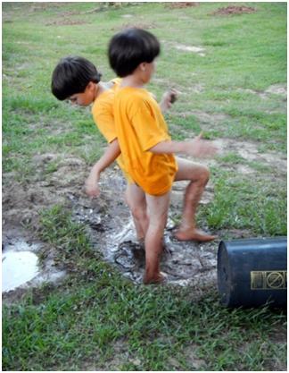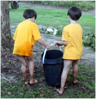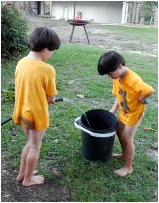 This time it just so happened that there was a bucket nearby that they filled with water,