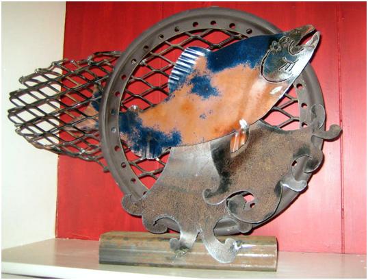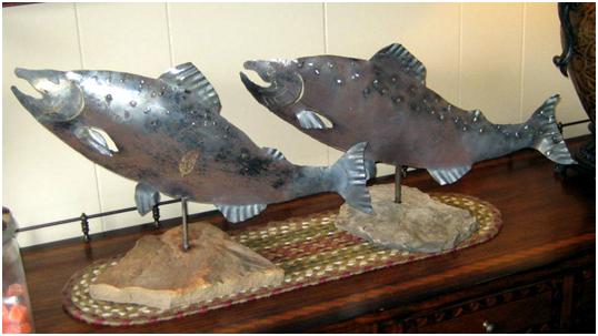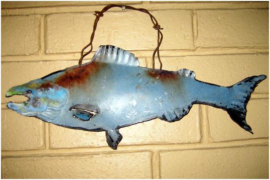 Then, there’s our ‘Salmon from the hood’ series. These we made using the old truck hoods.