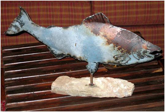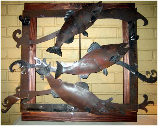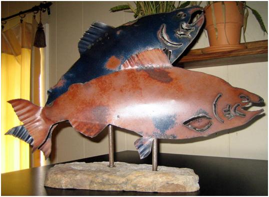 We made some of the salmon from 18 gage steel.