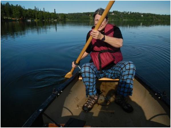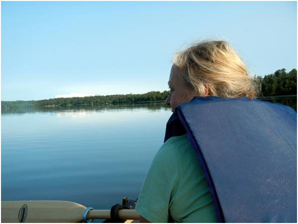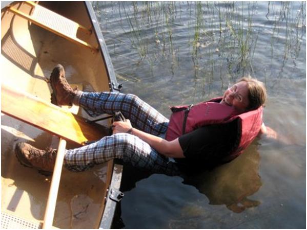 and read our devotional together. We took the oars with us so that we could do a little canoeing. When we slid the canoe into the water I waltzed on into it like I had good sense; a fact which we all know is a figment of my imagination. Before I knew it, I found myself