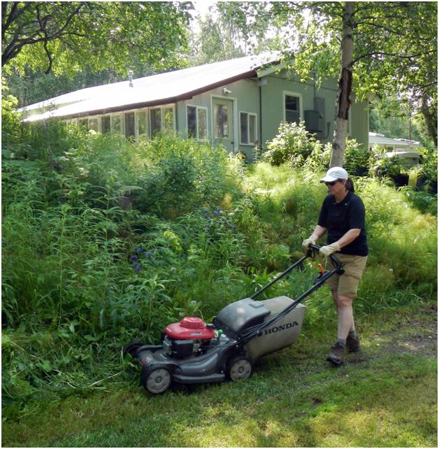 Shawn cranked up the motorized weed whacker on wheels, and I found a manual one for those hard to get places, and we went to work.