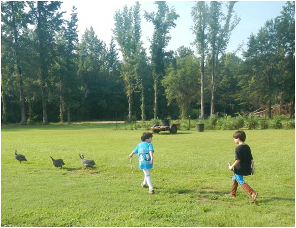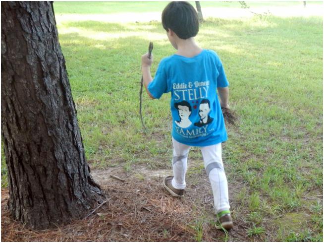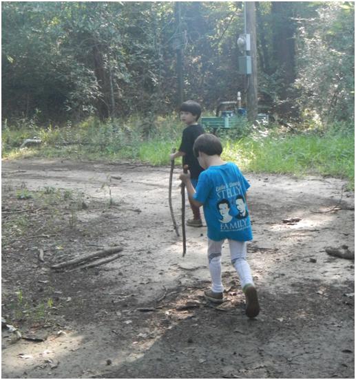The first thing that Hudson wanted us to do was go toward the creek and find some walking sticks,