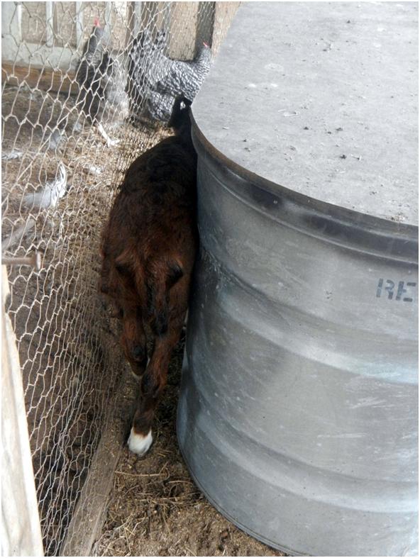 Jasmine has been here for a week now, and that kid is still as wild as the wind. At first she ran with Willow and Rose, but I was unable to touch her. So, I put her in a pen next to the chickens so that we can sit and talk and learn to trust each other.