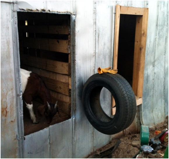 I cut out a section of the tin to make the stall accessible from the goat yard…