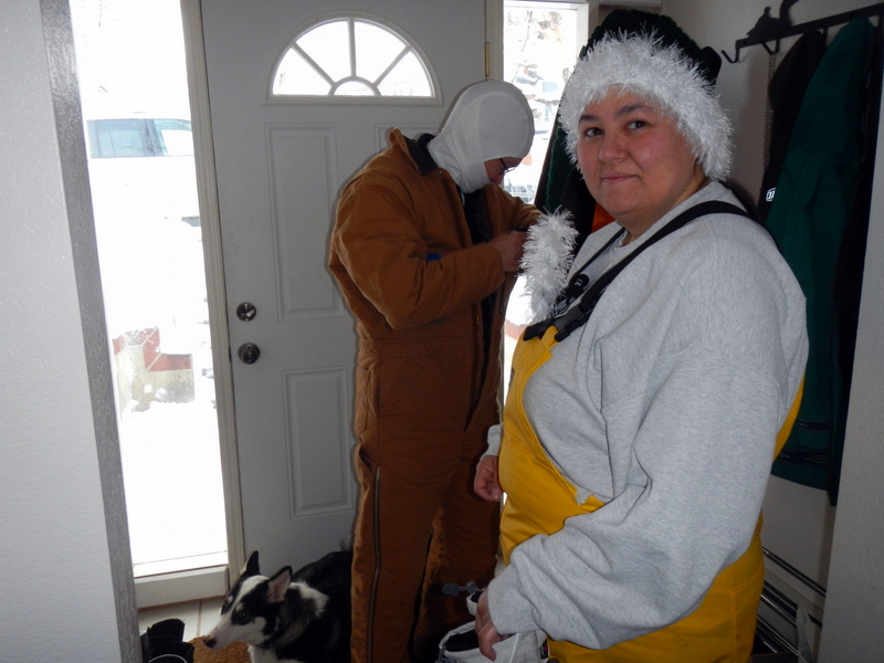Last night it snowed again, so this morning Mom