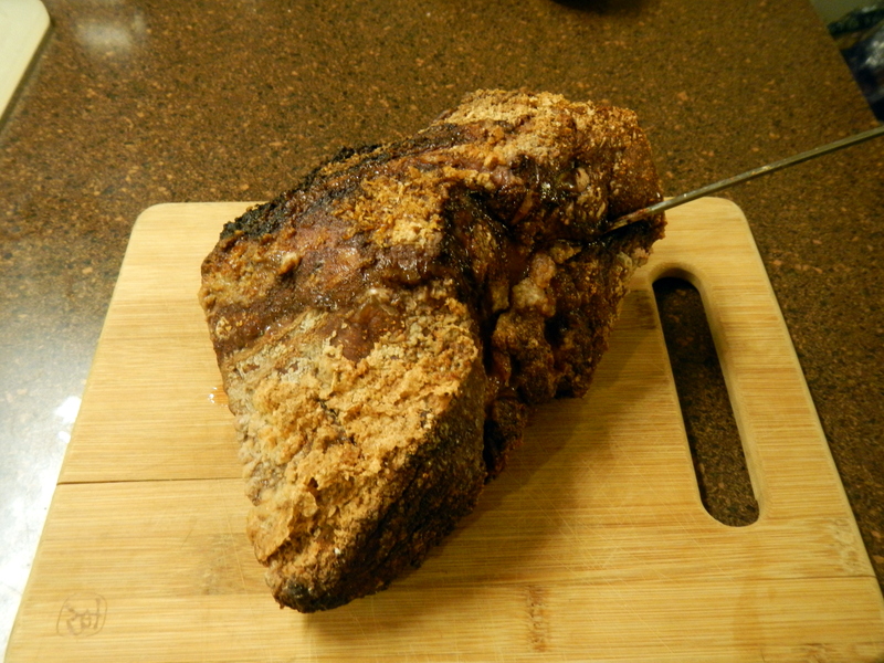 I hung it inside the tin oven and turned it till it browned really well and was pretty much done.
