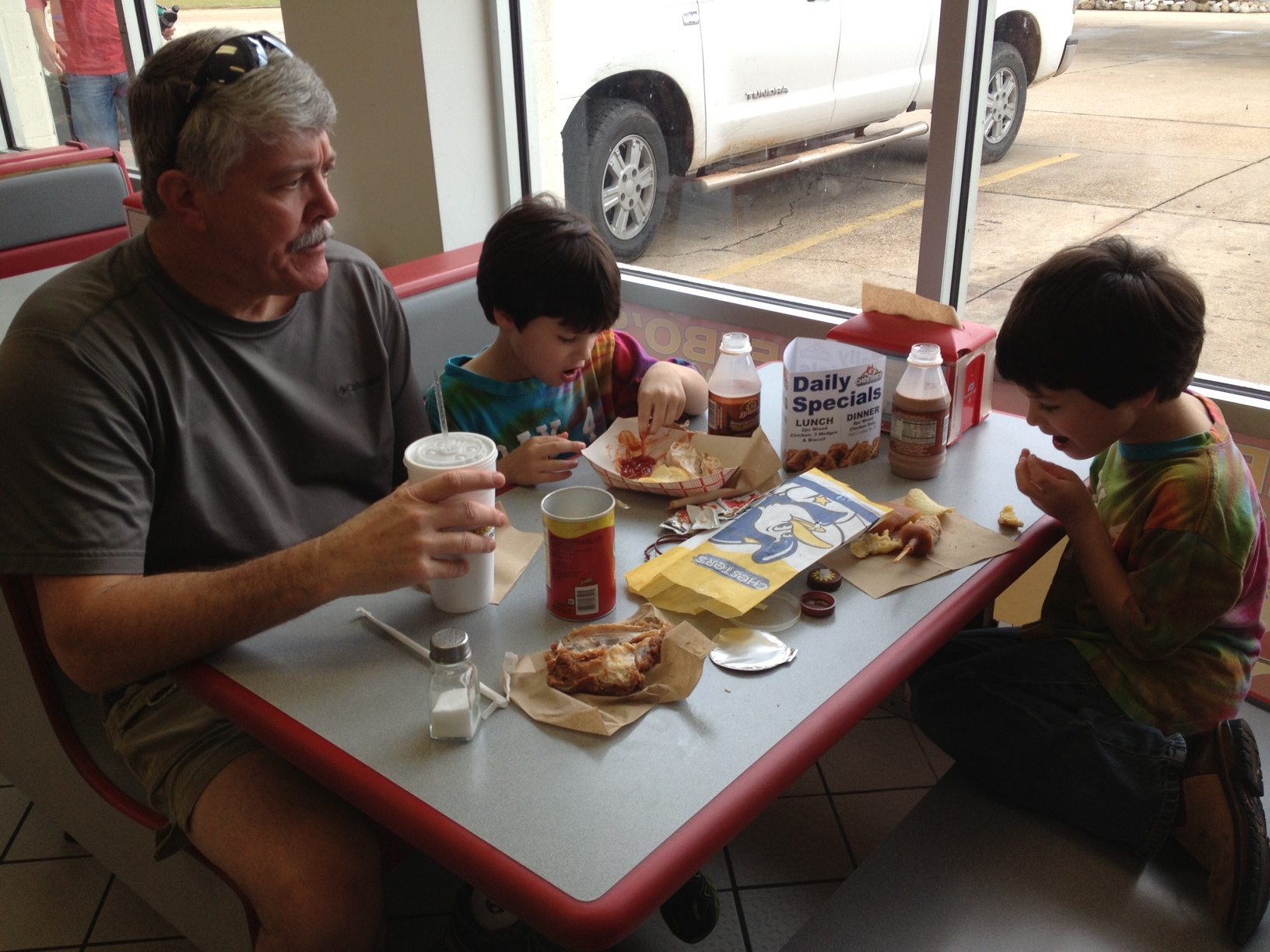 Today Josh, Nikki and Josie went to a daylily meeting, so the boys stayed with us. We took them to Leebo’s (because they love to go there) for lunch.
