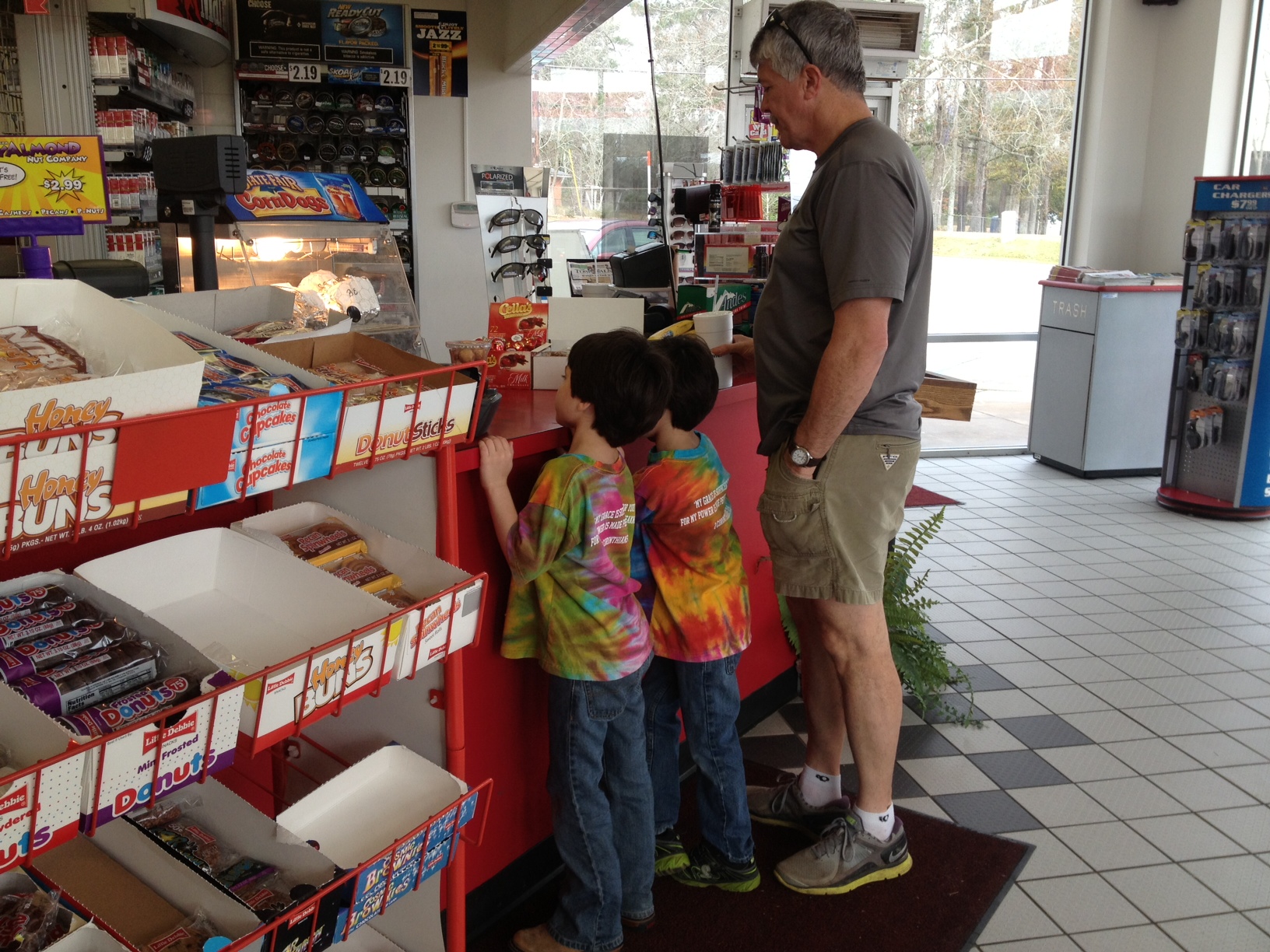 picked out desert which consisted of doughnut holes in a cup. When we got in the car, Joel reminded them to put their seat belts on. That, in turn, reminded me of a jingle that came out years ago before seatbelts were mandatory. I began to sing, “Buckle up for safety, buckle up. Buckle up for safety, everybody buckle up. Show the world you care by the belts you wear. Buckle up for safety, everybody buckle up.” Perhaps you remember it. Joel did, and sang along. Before we could sing it a second time, Joel changed the third line to, “Show the world you care, wear clean underwear“. Well, that changed the whole dynamic of the song, so we had to make up words compatible with Joel’s new line. I won’t tell you what they were. It’s more fun to make up your own lyrics to match the mood of your family.