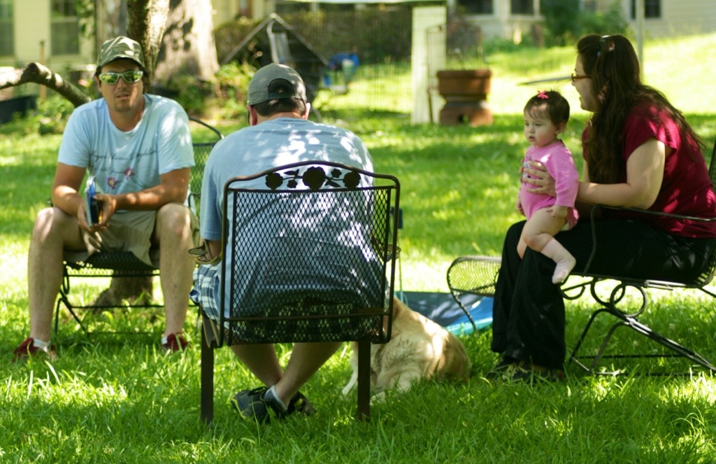 Josh joined the circle in the shade,
