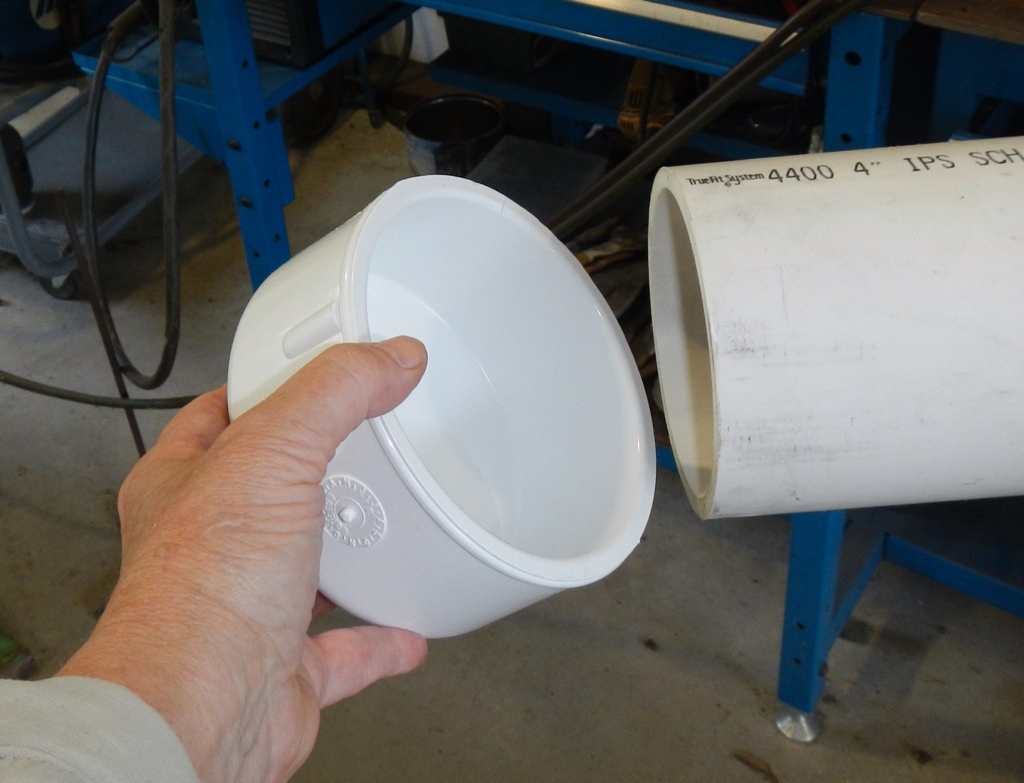 Monday I built the deck for my floating duck island, and yesterday I added the floatation devices, which I made out of PVC pipe. I had four pieces of four inch pipe,