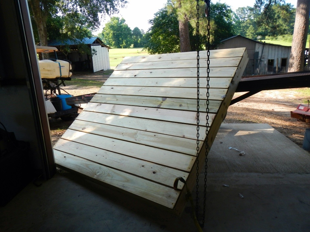 then leaned the deck up against a trailer. I had to ask for help to load it, because IT WAS HEAVY. It took three of us…Donna, her daughter Katie, and me.
