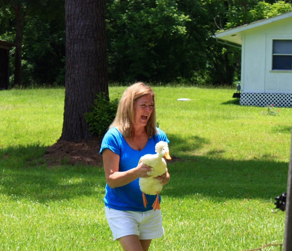 completely unaware that she was about to enter the duck round-up zone. To tell you the truth, it was a good thing she showed up, because that girl can get serious about catching ducks.