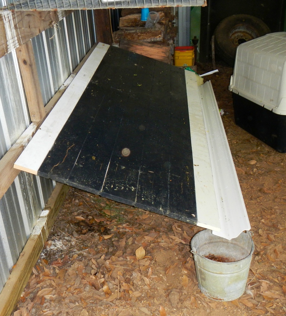 I headed to Alexandria to get a piece of gutter for my day’s project. Recently I moved the two rabbits, Sassafras and Polk Salad Annie, to a double cage that I put in the woodshed. I did that so that when I go to Alaska, it will be easier on whoever takes care of them. And, I thought that this way they could get used to each other and become friends. However, they were making a mess where Joel will be stacking wood for the winter, so I thought I’d take care of that problem before it got any worse.