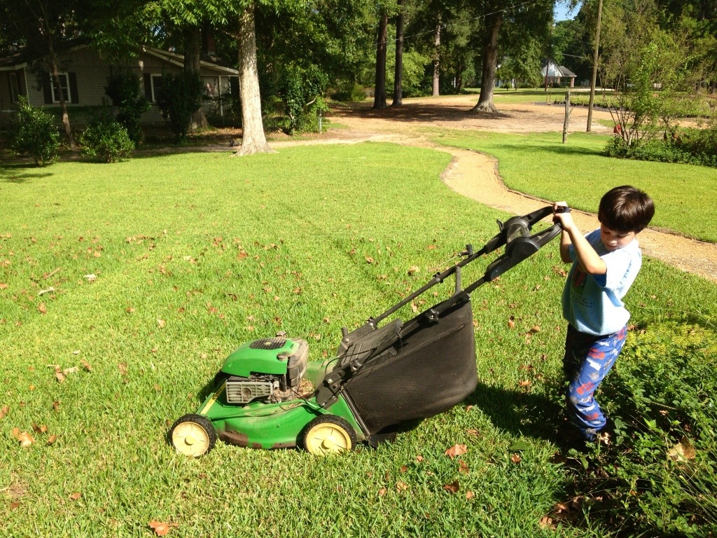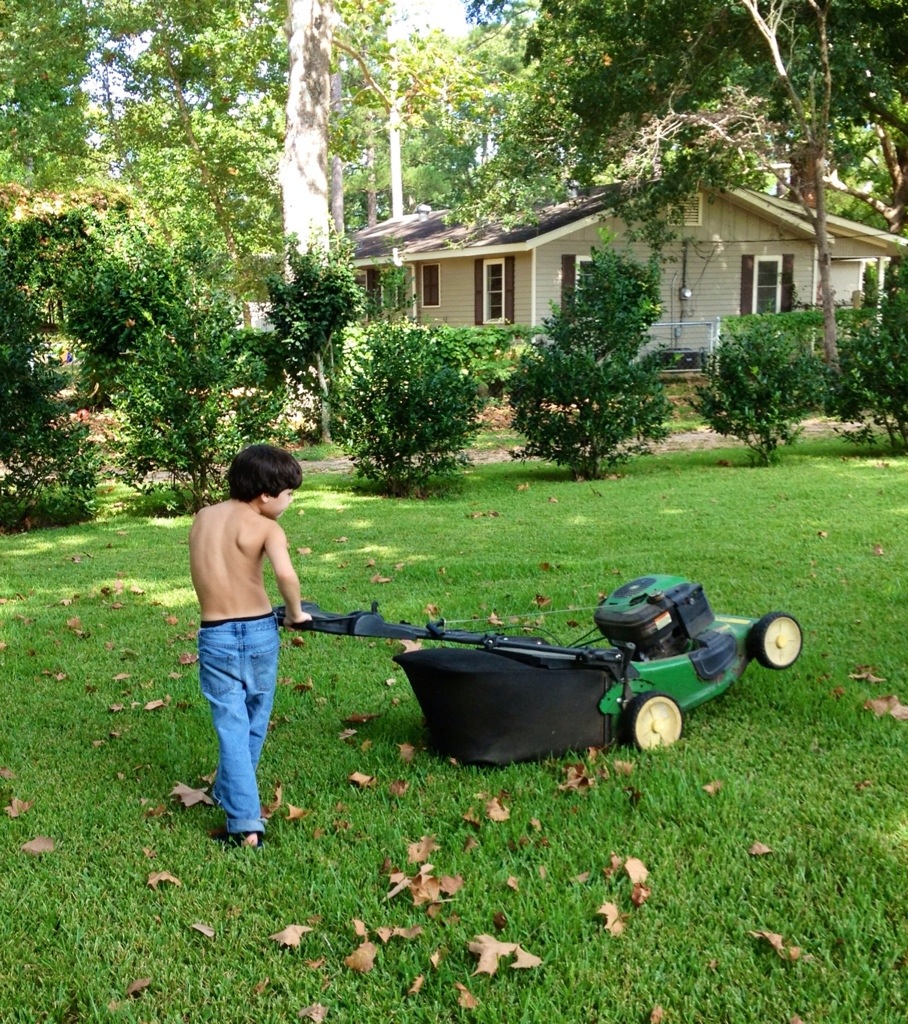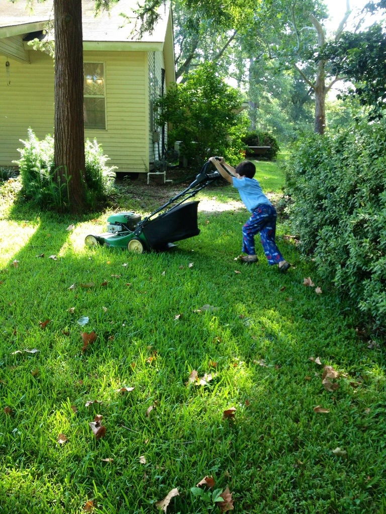 mowing the front yard. They had a fabulous time.