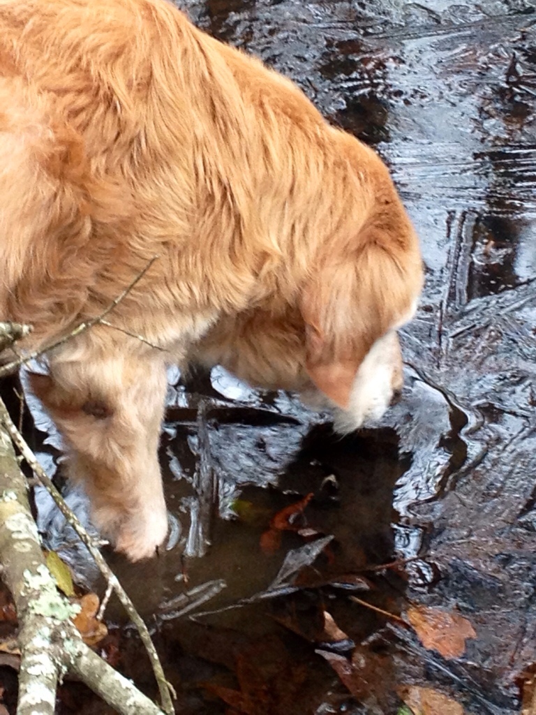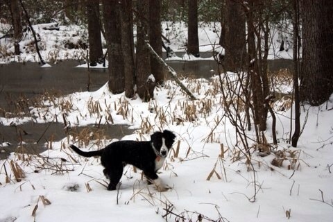 Since the temperature never rose above freezing on Friday, we still had snow on Saturday. I took the dogs for an early morning walk on the south side of the property. It wasn’t long before they got sidetracked rummaging for leftovers
