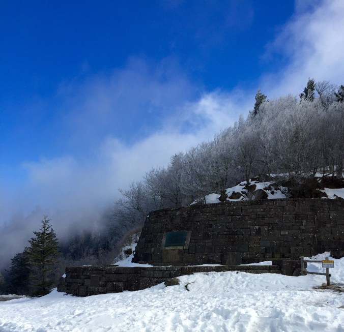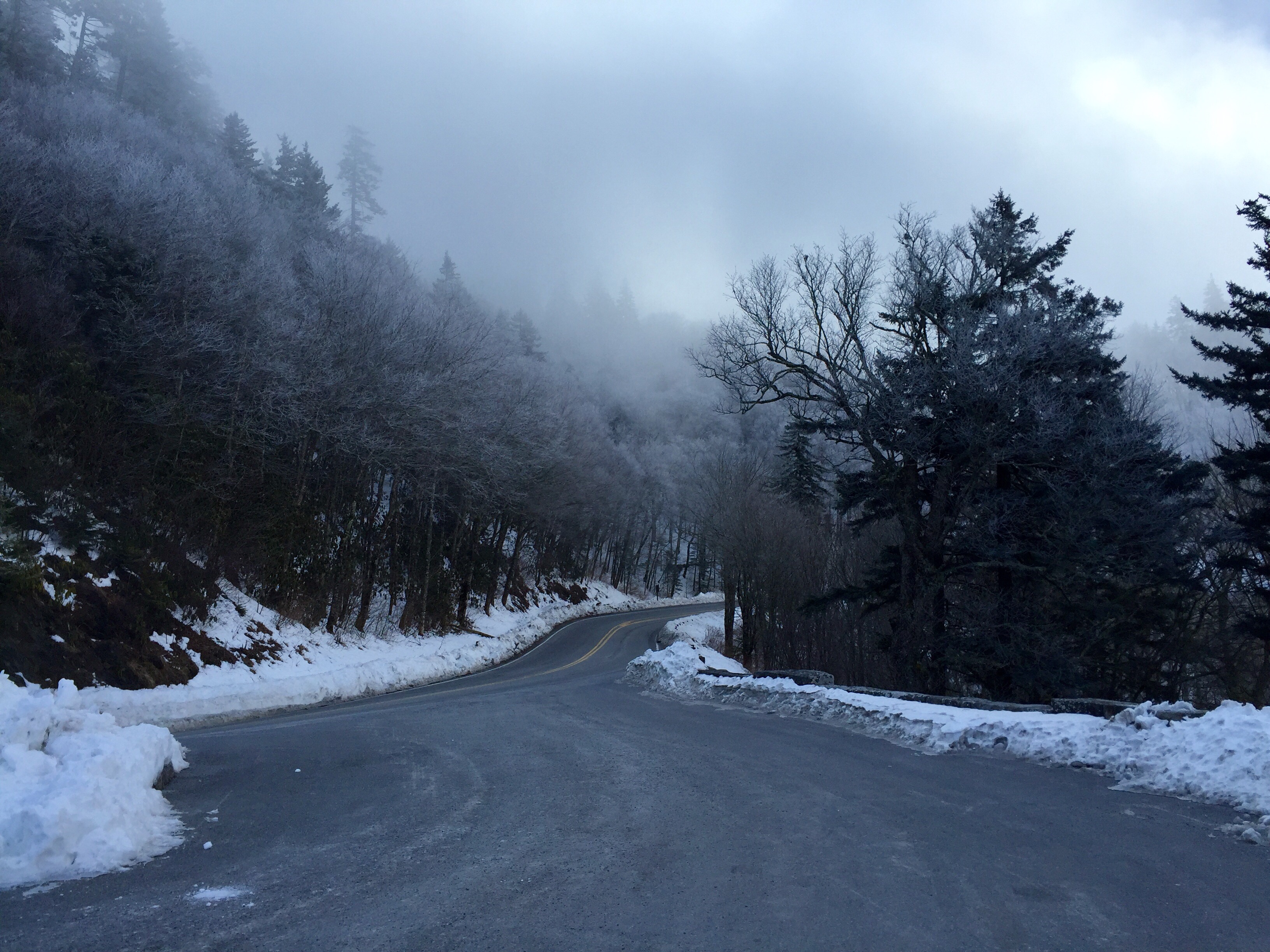 This morning we headed up to Newfound Gap to see if there was any snow left over from the weather that blew through here over the weekend. And there was.