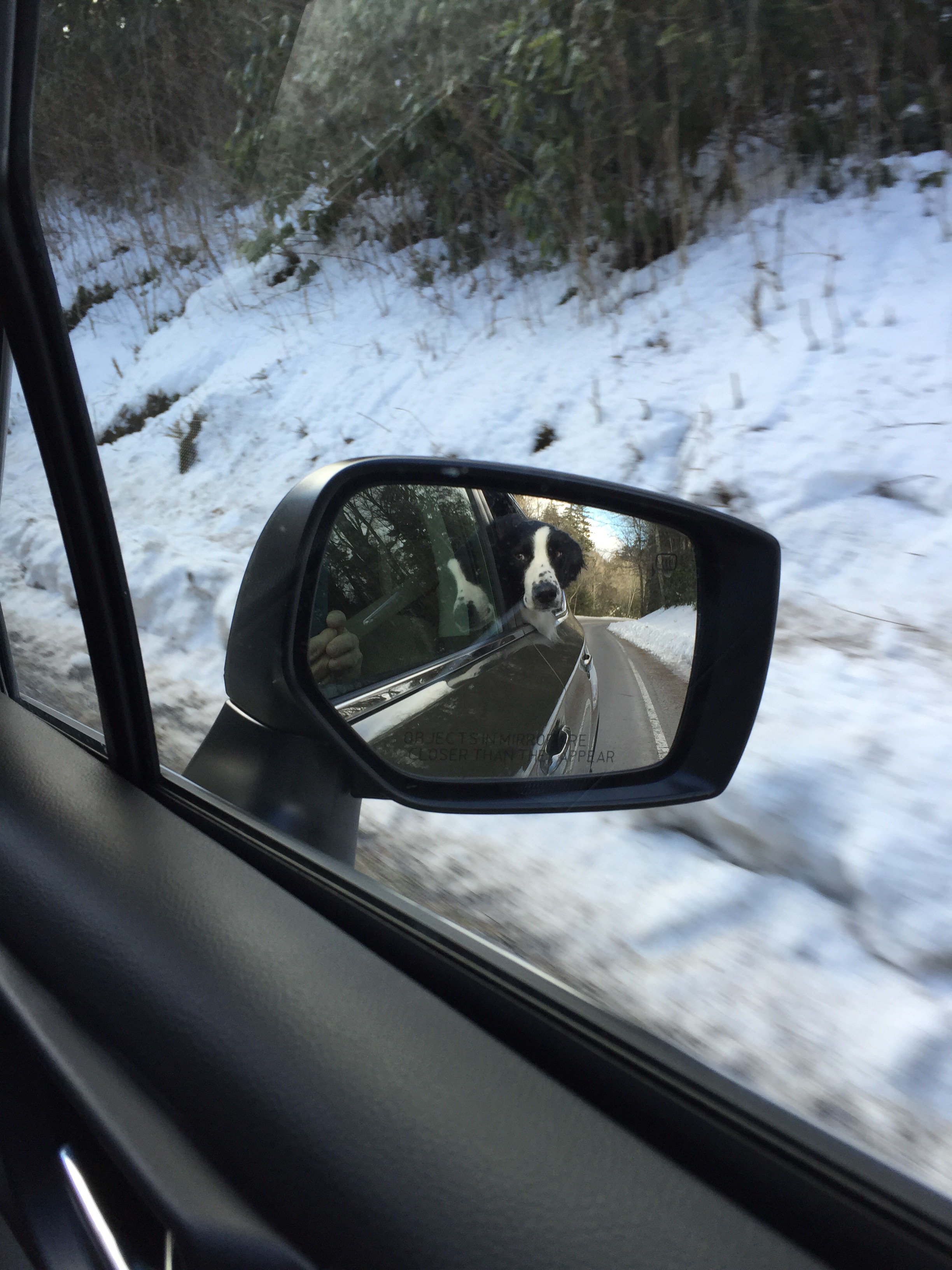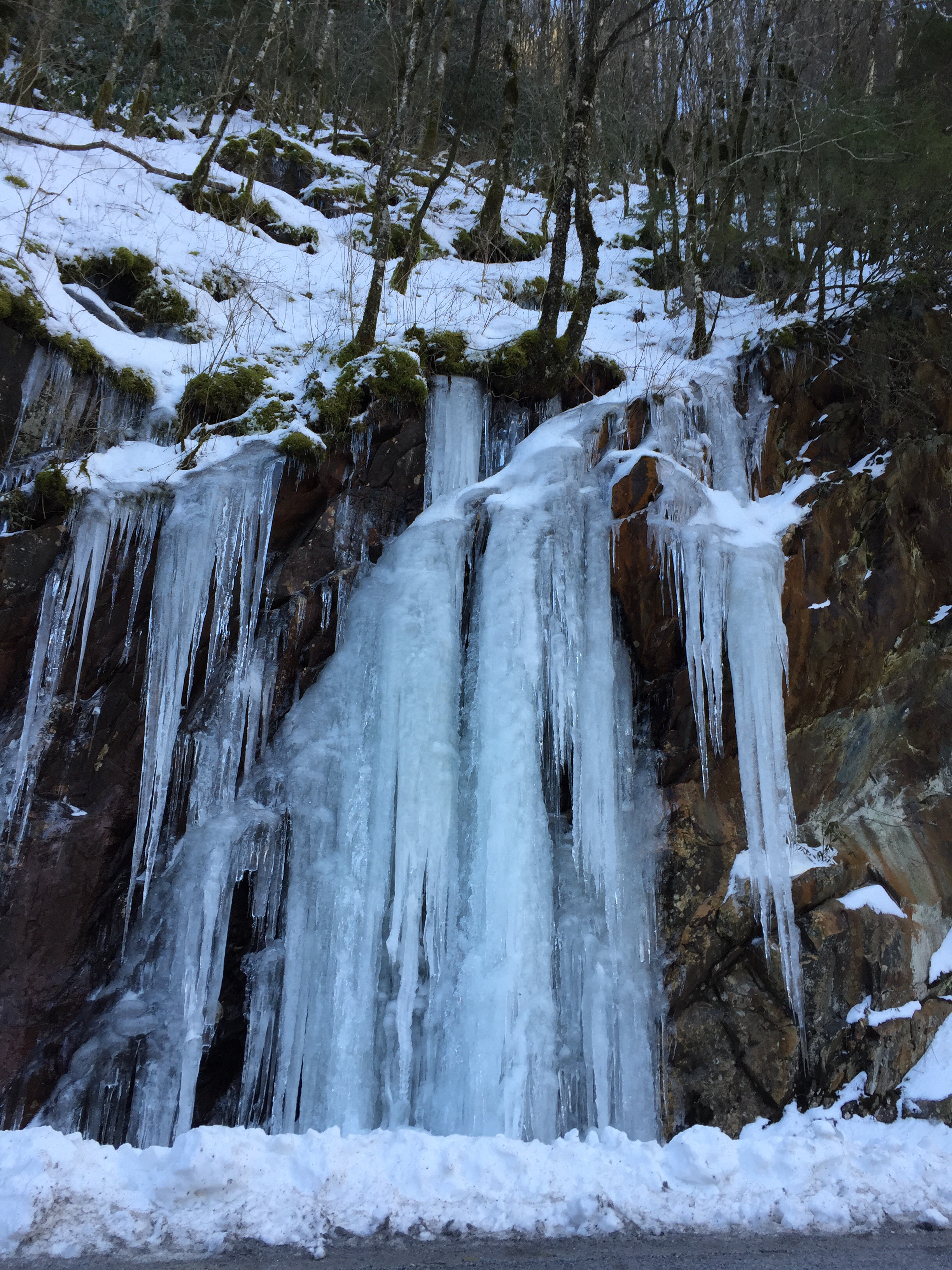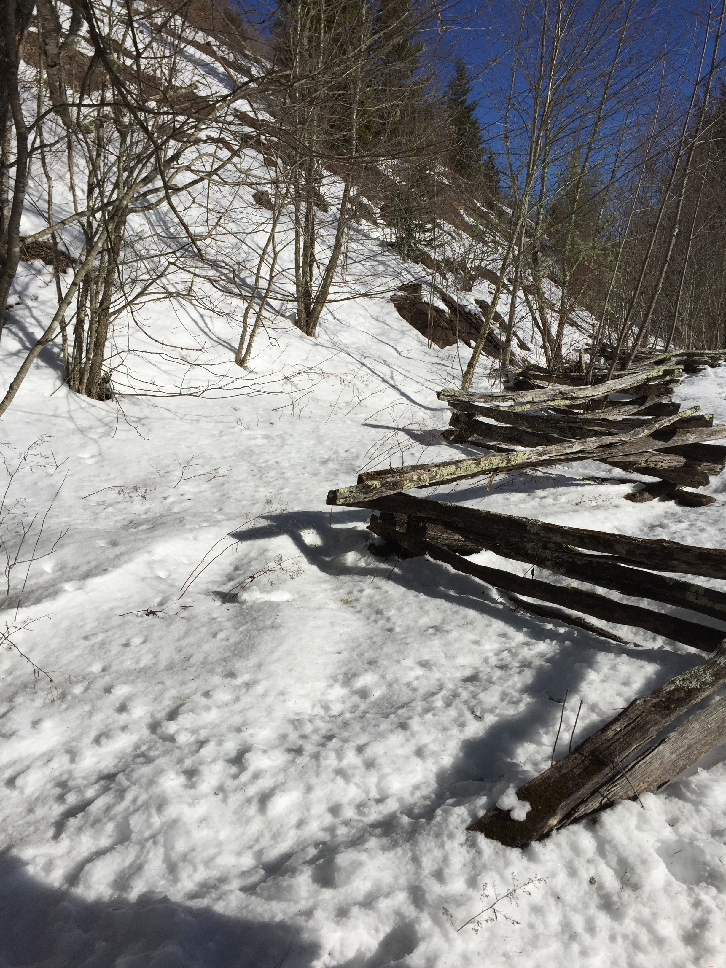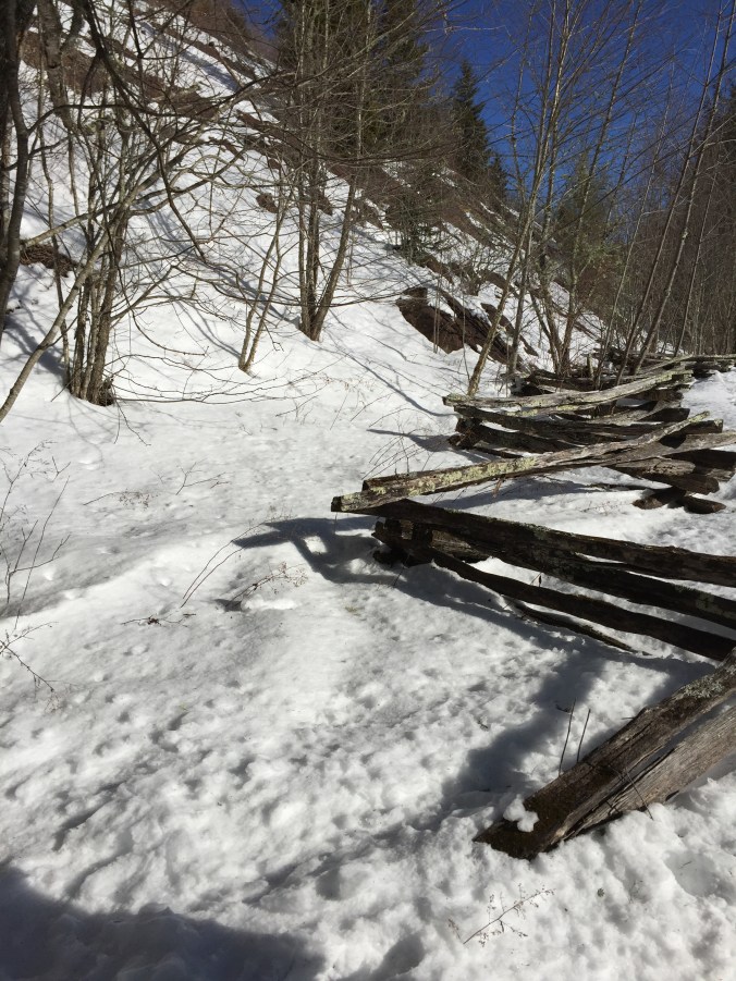 We stopped once on the way down the mountain for me to take a photograph …which I never got. You see, on my way down a little embankment, I took a step and sunk up to my rear in snow. When I finally climbed out of that, Joel asked, “Do you want to stop at another place?” I said, “Nope, I’m over it. Let’s go.”