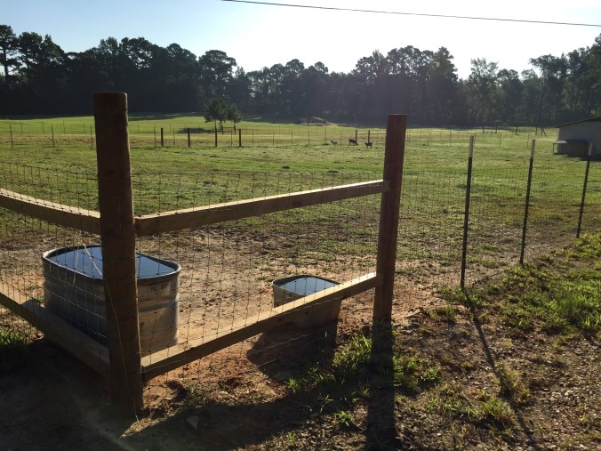 We drove to the goat pasture where I hooked up the hose to another faucet, turned it on, and put the other end in the trough.